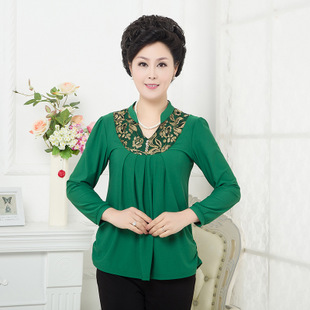 2015中老年女裝春秋季新款V領(lǐng)長(zhǎng)袖T恤衫媽媽裝一件代發(fā) /