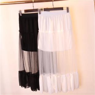 直銷2015夏裝新款 韓版時尚透視網(wǎng)紗拼接雪紡半身裙高腰性感長裙 /