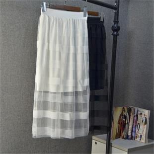 廠家直銷 夏季女裝新款韓版松緊腰條紋長款氣質(zhì)網(wǎng)紗蓬蓬半身裙 /