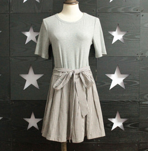 vivi外貿(mào)原單2015女裝夏新款韓版棉圓領(lǐng)短袖拼接連衣裙短裙批發(fā) /