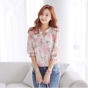 韓國代購2015春夏新款韓版優(yōu)雅魅力花紋襯衫 女夏季熱賣一件代發(fā) /