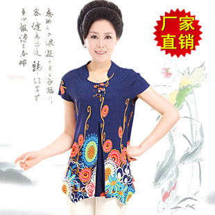一分錢拿樣中老年女裝夏裝短袖T恤 民族風休閑上衣大碼媽媽裝服裝 /