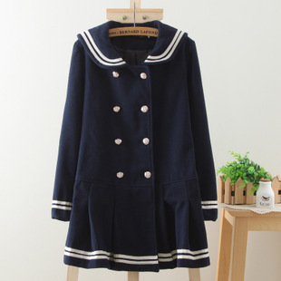 日系學(xué)院風(fēng)海軍領(lǐng)雙排扣毛呢外套呢大衣水手服 /