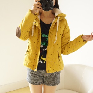 冬裝新款棉襖 日系學(xué)院風(fēng)星星印花羊羔絨加厚連帽棉衣 女保暖棉服 /