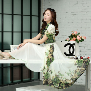 2015新款真絲雪紡連衣裙春夏波西米亞修身沙灘連衣裙長(zhǎng)裙廠家批發(fā) /