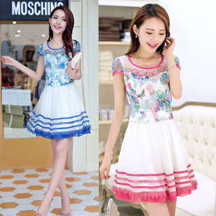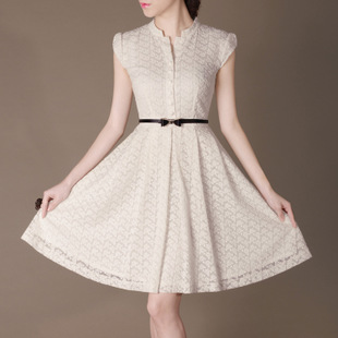 2015夏季新款韓版蕾絲連衣裙 時(shí)尚氣質(zhì)修身女裝圓領(lǐng)短袖連衣裙 /