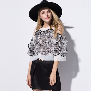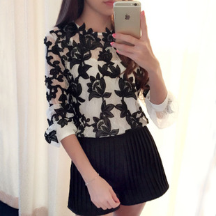 2015早春歐洲站新款女裝重工刺繡仙女范透視蕾絲衫氣質上衣 5071 /