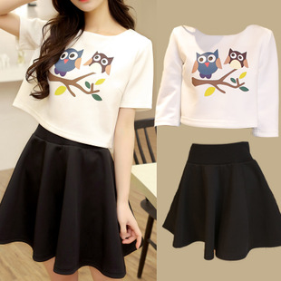 歐洲站2015新款春裝女士套裝裙休閑短袖兩件套裝蓬蓬裙連衣裙女夏 /