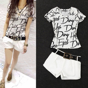 簡介: 貨號 9086# 產(chǎn)地 廣州 主圖來源 實拍有模特 貨源類別 現(xiàn)貨 是否庫存 是 風(fēng)格 歐美休閑時尚 圖案 字母 面料 滌綸 款式 褲套裝 上衣款式 T恤 褲款式 闊腿褲 褲長 短褲 流行元素 印花 工藝 印花/印染 上市年份/季節(jié) 2015夏季 顏色 圖片色 尺碼 S,L,M,XL
