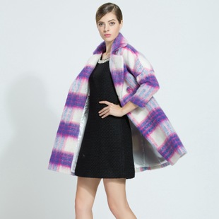 2015歐洲站新款女裝 時(shí)尚寬松毛呢外套 大牌格紋大翻領(lǐng)風(fēng)衣外套 /