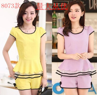 新款韓版修身雪紡兩件套裙褲裙短褲休閑套裝 代理加盟 一件代發(fā) /