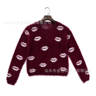 金色彩馬海毛毛衣女冬季新款韓版打底針織衫短款嘴唇領套頭毛衣女 /