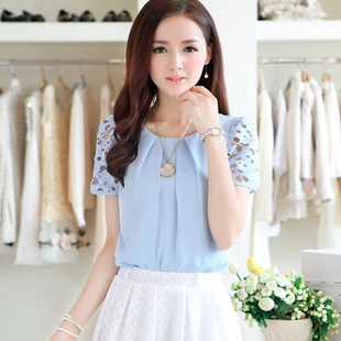 簡介: 建議零售價 ¥218.00 產(chǎn)品類別 雪紡衫 貨源類別 現(xiàn)貨 風(fēng)格 韓版 圖案 純色 主圖來源 實拍有模特 款式 套頭 工藝 拼貼/拼接 品牌 minggie 貨號 mj6109 產(chǎn)地 杭州 是否庫存 是 庫存類型 整單 版型 修身型 衣長 普通款(50cm<衣長≤65cm) 領(lǐng)型 圓領(lǐng) 袖型 鏤空袖 袖長 短袖 流行元素 鏤空 上市年份/季節(jié) 2014夏季 面料 雪紡 成分 滌綸 成分含量 95%以上 顏色 白色,紫色,藍(lán)色 尺碼 S,M,L,XL