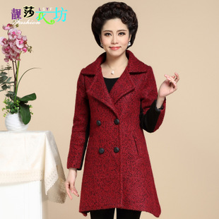 2015春冬新款羊絨中長款 媽媽裝外套中老年服裝女 毛呢大衣女批發(fā) /