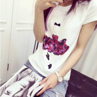 • 棉T2015夏季新款T桖 歐洲站芭蕾舞女孩亮片短袖時尚T恤 女3670 /
