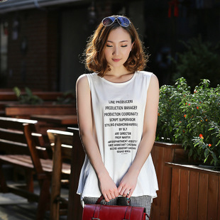 2015新款女裝韓版背心字母印花T恤女純棉U領(lǐng)無袖寬松T恤廠家批發(fā) /