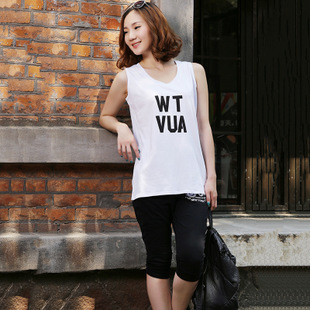 2015新款大碼背心女U領(lǐng)莫代爾寬松字母印花女式無袖T恤廠家批發(fā) /