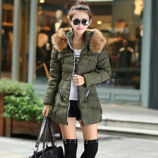 批發(fā)2015冬裝時(shí)尚韓版修身毛領(lǐng)連帽拉鏈中長款保暖棉衣棉服女外套 /