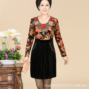 批發(fā)春裝 韓版中老年女裝加大碼連衣裙 金絲絨假兩件長袖高腰裙 /