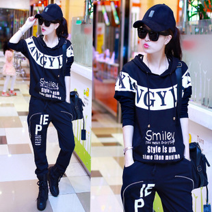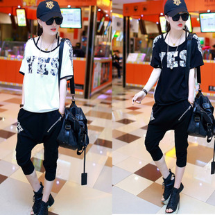 2015夏裝新款女休閑套裝 短袖t恤套裝 學(xué)生寬松運(yùn)動服褲套裝 /