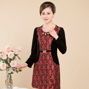 中老年連衣裙2015春季新款大碼修身連衣裙長袖絲絨媽媽裝 /