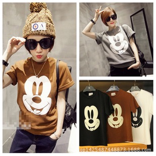 韓國(guó)代購(gòu)2015夏季SZ新款女裝寬松半袖米老鼠短袖T恤女士體恤大碼 /