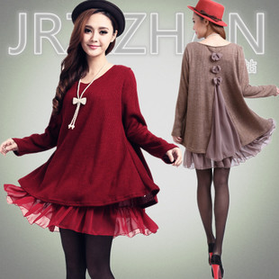 胖妹妹特加肥加大碼女裝批發(fā)秋冬新款韓版顯瘦長袖針織連衣裙子 /