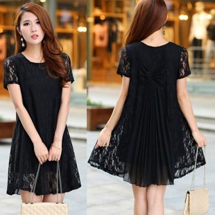 胖mm大碼女裝一件代發(fā)夏裝顯瘦蕾絲雪紡短袖連衣裙防曬衣服裝批發(fā) /