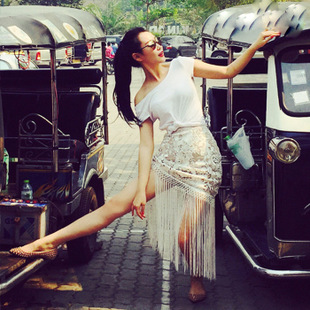 2015春夏女裝泰國Poem 蕾絲網(wǎng)紗透視性感魚尾半身裙 /