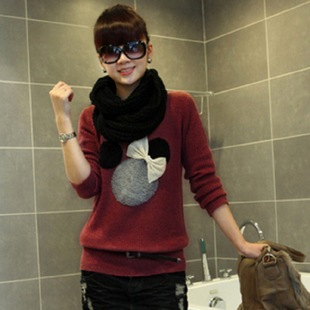 2015春季新款蝴蝶結卡通圓領女士長袖線衫毛針織衫女式 /