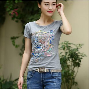 T03#2015夏季新款民族風棉麻短袖女裝休閑純棉T恤 /