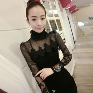 8263#春夏裝新款女裝韓版蕾絲拼接性感長袖修身型女式針織上衣 /