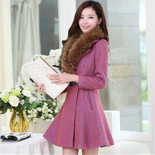 • 2014秋冬新款大毛領(lǐng)毛呢外套長款大碼修身呢子大衣 已出加色 /