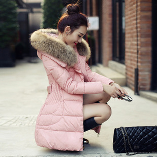 • 2014秋冬新款加厚中長款羽絨服女韓版修身收腰大毛領(lǐng)羽絨服 /