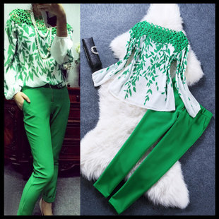 簡介: 建議零售價 ¥230.00 貨號 3T1146 產(chǎn)地 深圳 主圖來源 實拍有模特 貨源類別 現(xiàn)貨 是否庫存 是 庫存類型 整單 風(fēng)格 歐美 圖案 印花 面料 仿真絲印花 褲子-聚酯纖維 款式 褲套裝 上衣款式 雪紡衫 褲款式 鉛筆褲 褲長 九分褲 上市年份/季節(jié) 2015夏季 顏色 綠色 尺碼 S,L,M