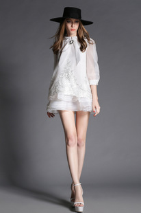 2015春夏新款歐美時(shí)尚小香風(fēng)重工訂位刺繡荷葉邊A字連衣裙 2834 /
