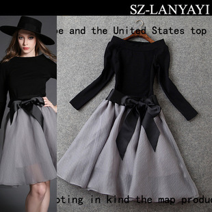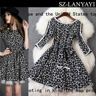 2015早春新款歐美優(yōu)雅氣質(zhì)印花刺繡圓領(lǐng)修身顯瘦連衣裙T2759 /
