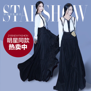 劉濤明星同款2015春裝新款歐美蝴蝶結(jié)系帶蕾絲上衣+長裙套裝女 /