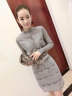 廠家供應(yīng)2015春裝新款歐洲站蕾絲拼接針織袖修身打底裙時(shí)尚連衣裙 /