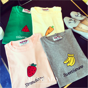 韓國2015可愛水果刺繡字母糖果色T恤四色 160 /