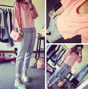 春夏休閑運動套裝 蝙蝠袖寬松短T+休閑哈倫褲 套裝 329 /