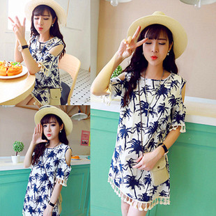 2015夏季最新款韓國時尚椰樹露肩流蘇連衣裙 860 /