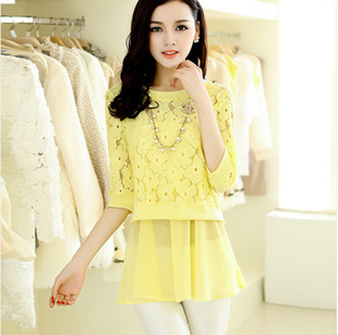 2015新款春夏一件代發(fā)韓版女裝網(wǎng)店免費代理兩件套上衣雪紡衫8025 /
