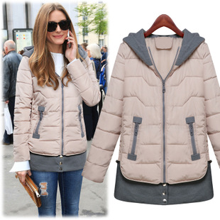 歐美風(fēng)快時(shí)尚2015冬季新款修身連帽中長款寬松加厚長袖羽絨棉服 /