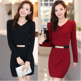 2015春季新款韓版連衣裙大碼女裝修身氣質(zhì)職業(yè)工作裝長袖打底裙 /