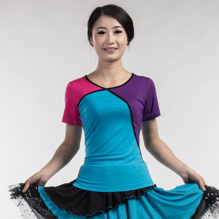 批發(fā)夏季廣場舞服裝 撞色柔軟透氣短袖上衣練功服 D10 /