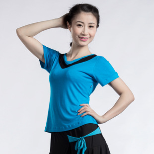 廠家直銷廣場舞短袖V領(lǐng)上衣 新款舞蹈服 女士跳舞瑜伽服 D04 /