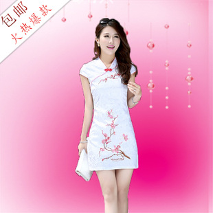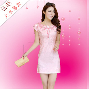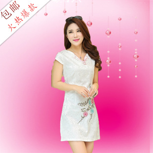 專業(yè)研發(fā)新款女式夏裝刺繡修身旗袍批發(fā)支持一件代發(fā)包郵 /