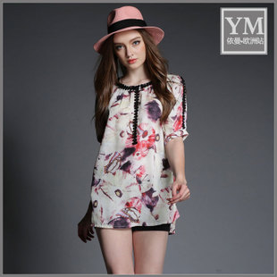簡介: 建議零售價 ¥288.00 產品類別 雪紡衫 貨源類別 現(xiàn)貨 風格 歐美 圖案 印花 主圖來源 實拍有模特 款式 套頭 工藝 印花/印染 面料名稱 雪紡 面料主材質分類 棉纖維 面料主材質 棉花 面料主材質含量 10%及以下 面料次要材質分類 棉纖維 面料次要材質 棉花 面料次要材質含量 10%及以下 貨號 8443 是否庫存 否 版型 寬松型 衣長 普通款(50cm<衣長≤65cm) 領型 圓領 袖型 常規(guī)袖 袖長 短袖 流行元素 拼接,印花 上市年份/季節(jié) 2015夏季 面料 雪紡 成分 棉 成分含量 91-95% 顏色 花色 尺碼 S,L,M,XL