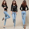 一件代發(fā) 2013女式牛仔褲 韓版修身顯瘦小腳褲 潮流淺色女褲9002 /